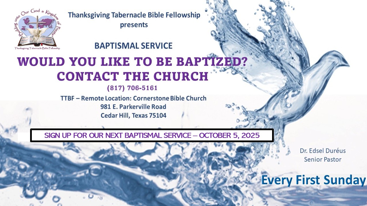 We're back in person! Join us on the first Sunday of every month for live in person worship and baptisms! We meet at 981 E. Parkerville Road, Cedar Hill, Texas 75104 (at the corner of Joe Wilson and Parkerville) at 1:00 p.m. CST. Join our virtual worship services on the other Sundays at noon CST on Facebook/Meta, Youtube, and Instagram. Click below or join us on Facebook/Meta, Youtube or Instagram.
